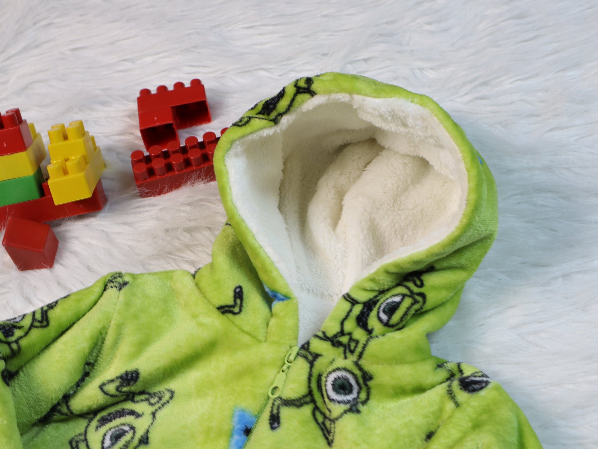 Fully fur-lined on the inside to provide maximum warmth in cold weather, with a thick yet soft fabric that keeps your baby warm without restricting movement.